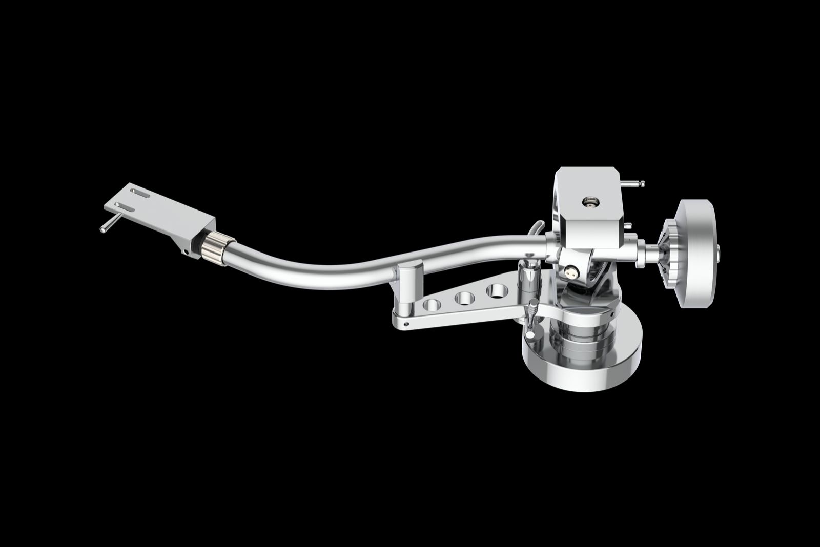 Für den EVO-AS-Tonarm verwenden wir ein spezielles s-förmiges Aluminiumrohr mit höchster innerer Dämpfung, gepaart mit einem SME Headshell. Der s-förmige Tonarm ist nicht nur ein Blickfang auf jedem Plattenspieler, er bringt auch technische Vorteile mit sich. Der Arm profitiert von einer viel geringeren Verzerrung der Rillenwinkel und einer hervorragenden Spurtreue.