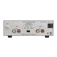 Technische Daten: Übertragung 20 Hz - 20 kHz +/- 0.5 dB, Ausgangsspannung 200mV/1 kHz, Klirrfaktor < 0.0005 %, Eingangsempfindlichkeit MM I & II: 4 mV/1 kHz, MC 0,45 mV/1 kHz, Signal Rauschabstand MM I & II > 88dB, MC > 78 dB, Eingangsimpedanz MM I: 47 kOhm/100 pF, MM II: 47 kOhm/300 pF, MC 100 Ohm/100 pF, Eingänge: 1 x RCA, Ausgänge: 1 x RCA, Netzanschluss: 12-16V/AC - 150mA. Beleuchteter Netzschalter.