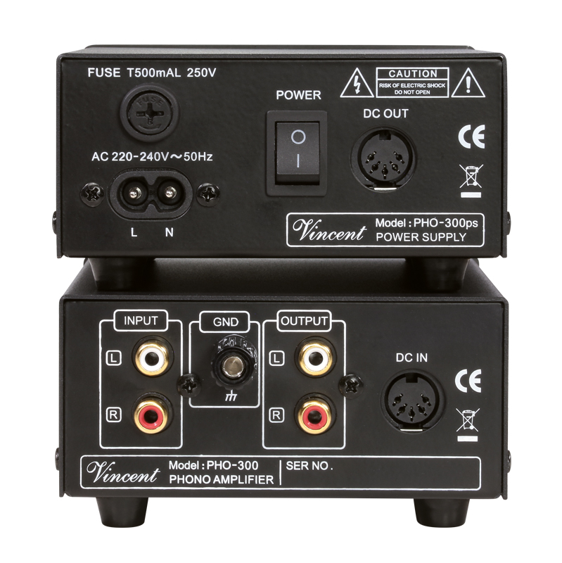 - Eingänge: 1 x Stereo RCA,1 x 5pol DIN (DC IN PHO-300)
